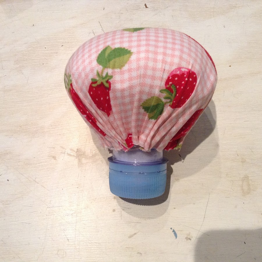 Ahora coge el circulo de tela y colócalo encima como si fuera un sombrero, así