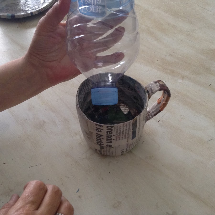 Debes tener una cosa en cuenta al hacer las tazas. Tienes que forrar con papel una completamente entera. La que hará de cajita, o sea la debes forrar por dentro y por fuera.