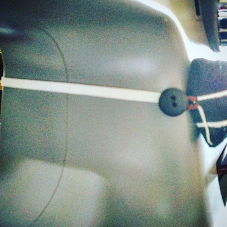 Uno de los laterales tendrá la trabilla necesaria para el botón y el otro la goma, cose las dos telas alrededor metiendo en un lado la cola de ratón así: