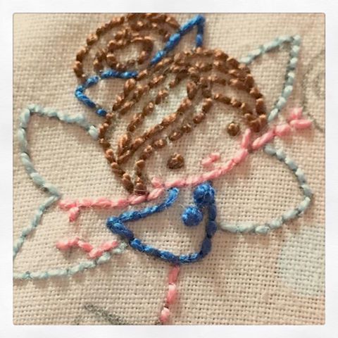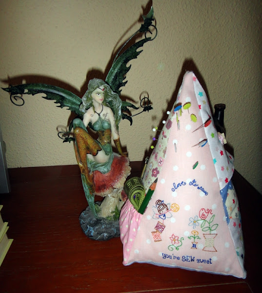 Mi favorita. Sobre el triángulo de tela, hacéis el bordado que os apetezca. El mio es mezcla de tres diferentes hasta que conseguí una composición que me agradara, y no he podido evitar hacer un hada.