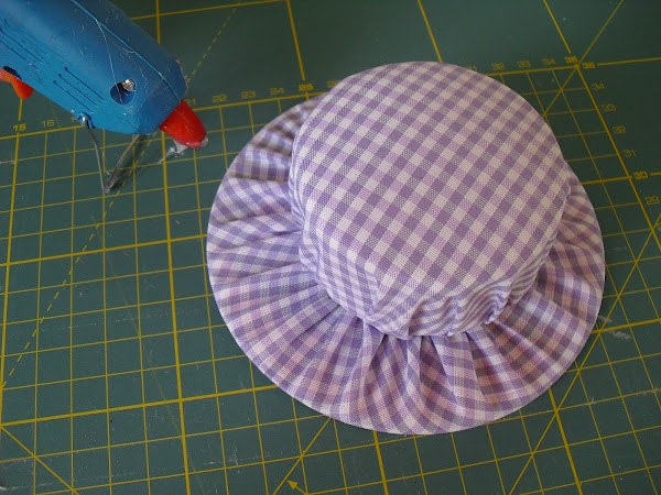 A continuación llenamos de guata la lata, (¡joe! parezco Gloria Fuertes) procurando que la susodicha salga un poco, para que así, nos quede un poco de forma en la copa de nuestro sombrero.