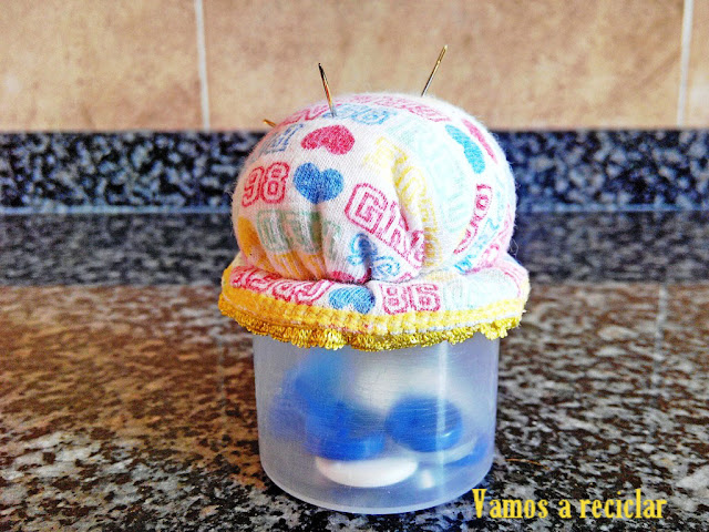Para mi nuevo costurero se me ocurrió hacer un alfiletero y, por supuesto, reciclado.