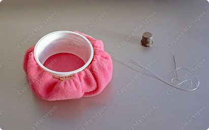 4.-Forrar nuestro frasco ya hueco con la tela y coser en toda la orilla para terminar frunciendo.