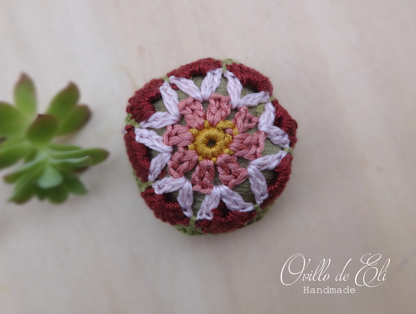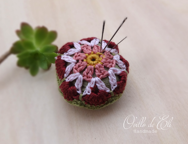 Este alfiletero es parte del CAL SORPRESA de Margarcimon de Tejiendo en mi Cocina, dentro del festejo del 8° año de su blog y este es el II Aniversario que lo festeja, no pude resistirme y me uní a su festejo, a vuelta de correo llegaron las instrucciones con varios alfileteros a escoger