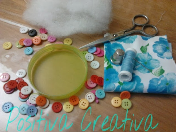 Primero envolvemos la guata con el trozo de tela y lo cosemos. Hay que intentar darle forma para que quede bien dentro de la tapa que tenéis.