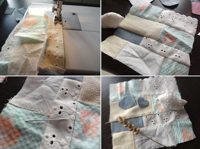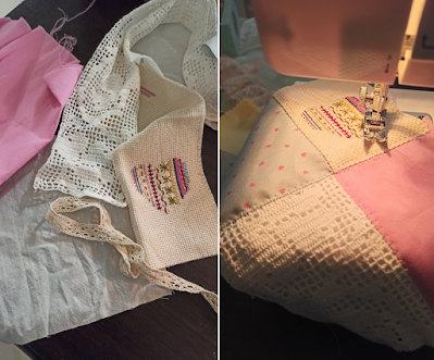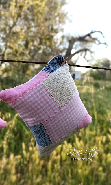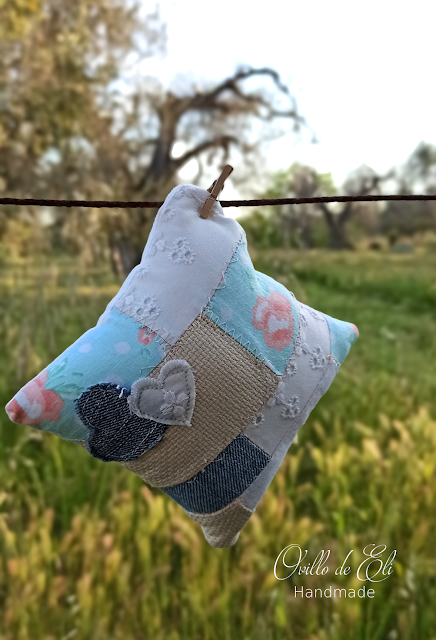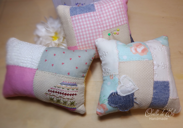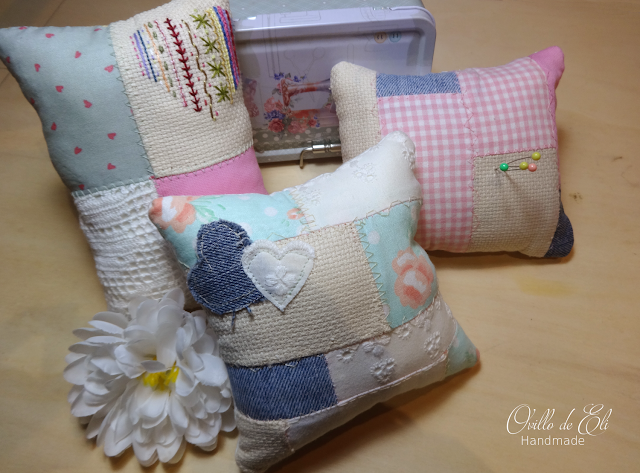 Como ven, en estos alfileteros va lo ultimo de la tela vaquera que tenia y algunos cortes de tela Aida, he descubierto que los diferentes tipos de zigzag pasados por las uniones de las costuras resaltan el trabajo