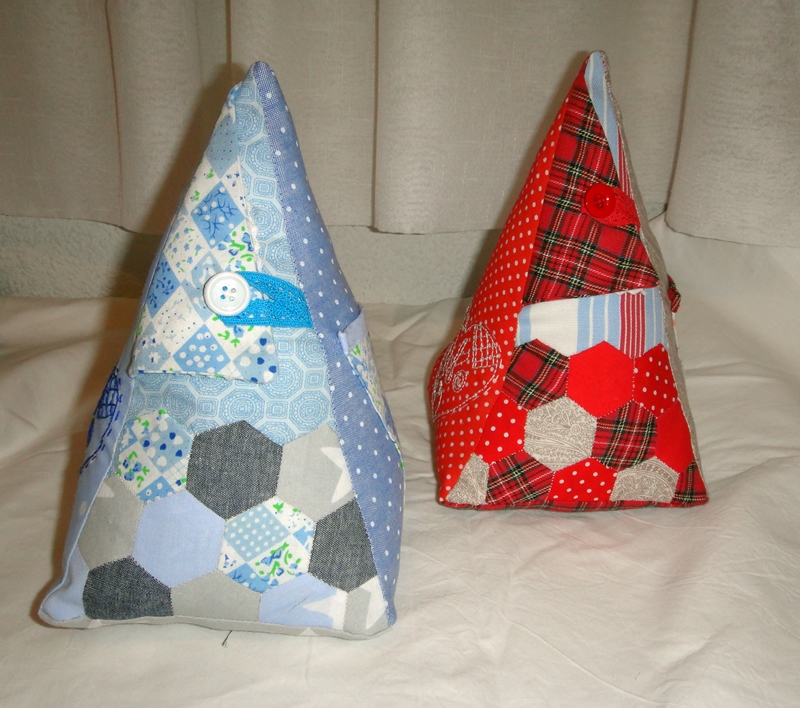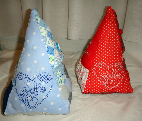 Varias personas me han dicho que les gustó mi alfiletero piramidal de patchwork, y he hecho otros dos para regalar esta Navidad. El tutorial para hacerlo lo tenéis pinchando en el texto azul.