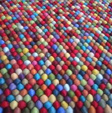 En primer lugar, cortamos el trozo de fieltro a la medida necesaria, y lo extendemos a lo largo de una mesa o en suelo, calculamos donde queda el centro, para poder empezar. Cuando ya tengamos el centro arrancamos de forma conjunta (es decir si hacemos la alfombra de forma redonda tenemos que hacer círculos redondos bien juntos, y si la hacemos en forma cuadrada tenemos que hacer cuadrados teniendo en cuenta que no deben quedar espacios). Para colocar la bolitas untando le unas gotitas de silicona caliente en la parte inferior de la misma. Dependerán del grosor de las bolitas para que quede mas compacta o mas menuda.