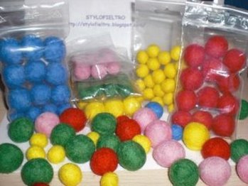 - Bolitas de fieltro (aquí en málaga se pueden comprar en tiendas de manualidades o en cualquier chino) las hay de muchos grosores y colores.