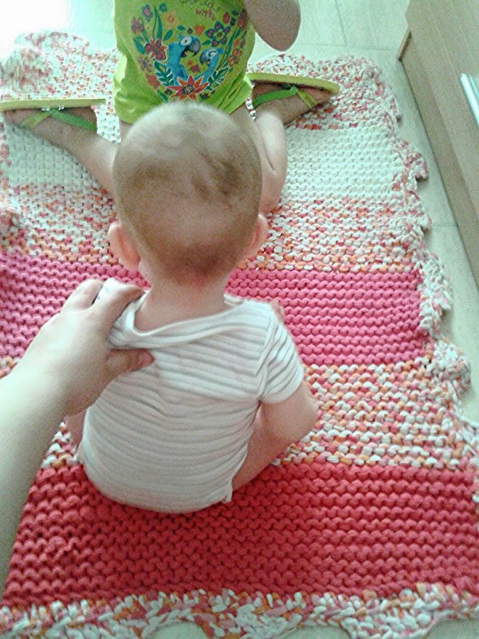 Usé 4 bobinas de trapillo y me quedó una alfombra de 1 x 0,75 bien maja para que jueguen.