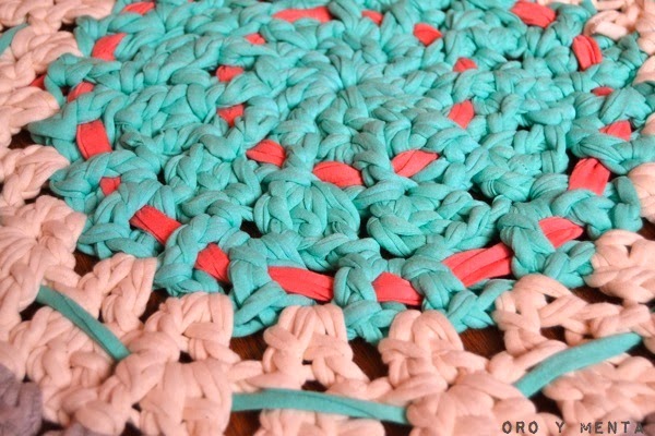Como veréis, la alfombra es circular y para animarla un poco le he añadido trapillo a modo de pasa cintas para que me quedara mejor, al menos a migusto.