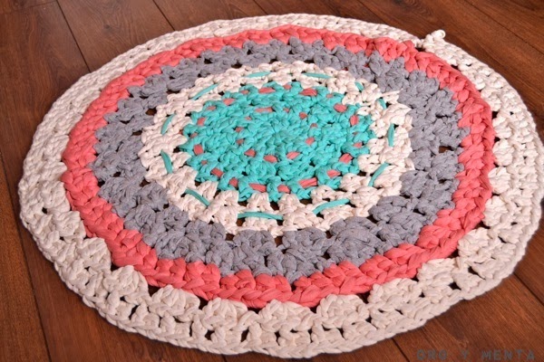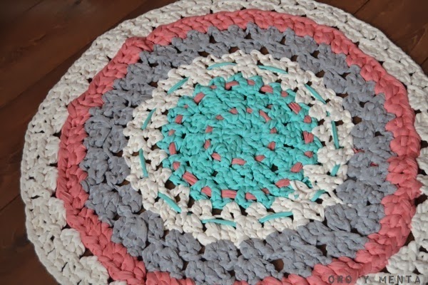 Pero hoy os muestro una alfombra que he hecho a mi hija para su habitación hecha de trapillo con ganchillo (menudo lío!!!)...o como dice mi hija, con "puntillo" ;)