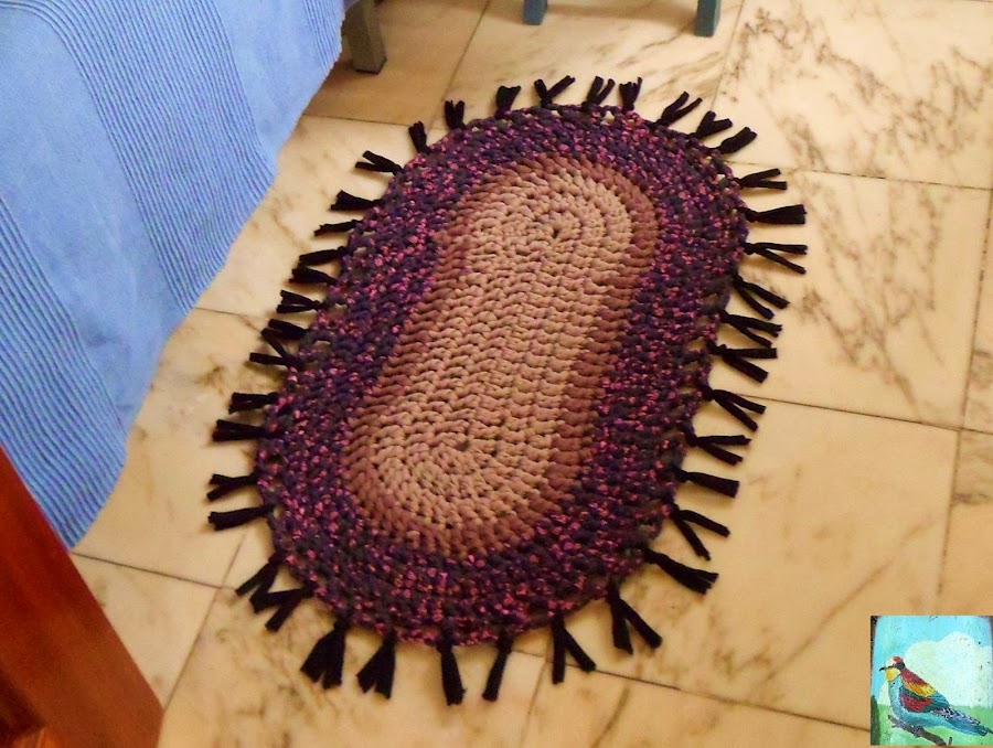 Esta alfombra concretamente la puedes hacer en una tarde, yo tardé un poco más porque hacía y deshacía hasta dar con la combinación de colores que más me gustó. Creo que el detalle de los flecos, le da un remate muy bonito, se me ocurrió ponerlos porque estaba empeñada en meter trapillo negro, pero tenía muy poco y no me llegaba ni para dar una última vuelta.