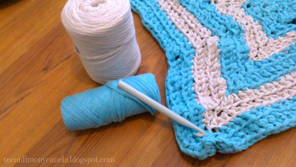 Si os animáis a hacerla, sólo necesitáis trapillo del color que más os guste. Si elegís distintas madejas, fijaos bien en el tipo de trapillo de cada una, para que sea el mismo (me sorprendió la de texturas diferentes que hay...).
