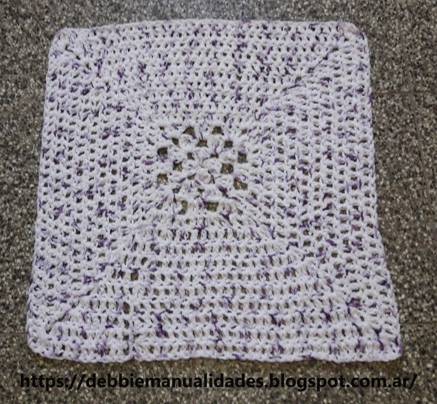 Esta alfombra la inicie con un granny normal; hice 3 vueltas caladas (pueden verlas bien en el centro de la alfombra) y luego comencé a tejer varetas en todos los puntos, para que quedara más cerradita y no le hiciera frío a mi perro.