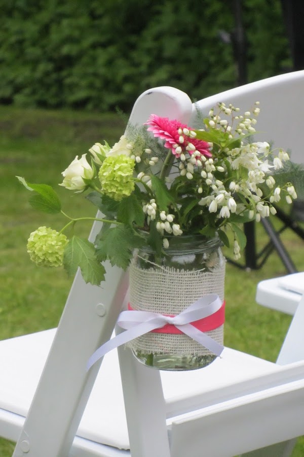 Dure una semana recolectando frascos de mayonesa con los amigos y la familia, los decoré y luego los colgé de las sillas...