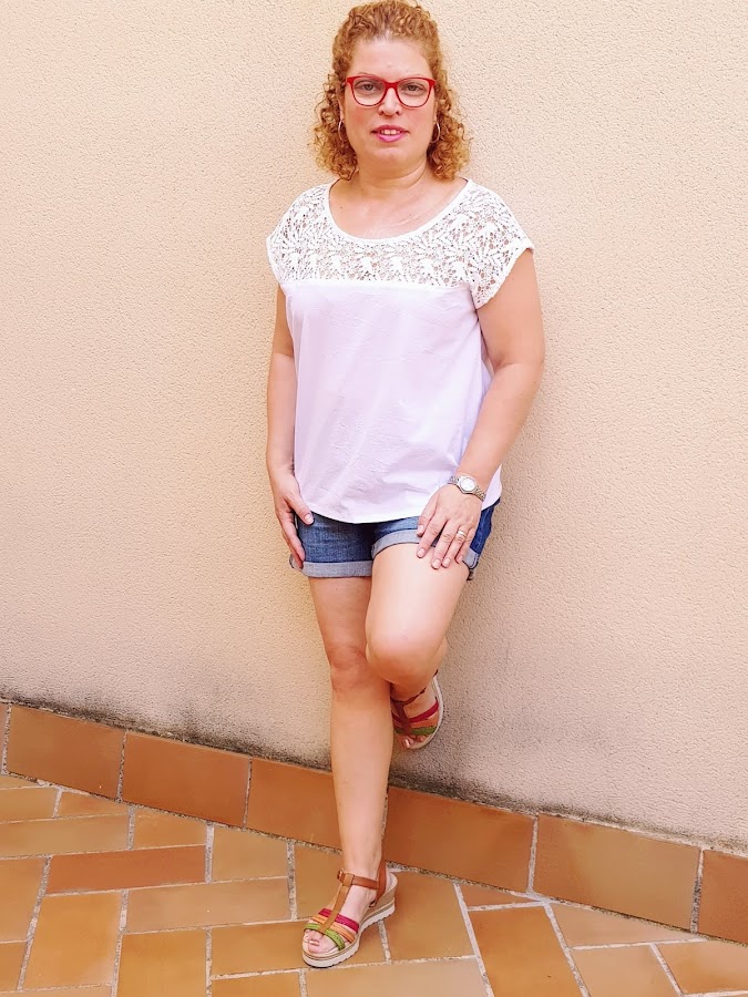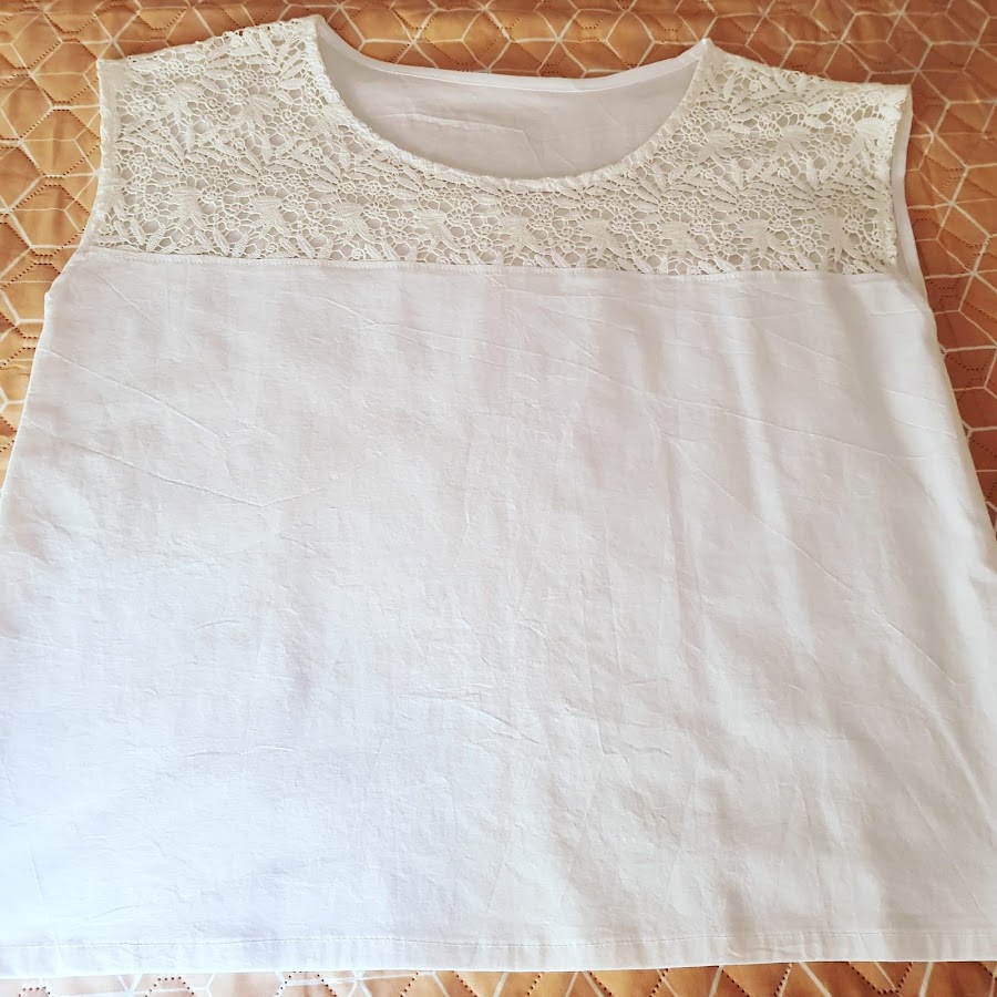 Teniav un trozo de guipour de color blanco que no sabia que hacer con el , porque no salia una prenda completa asi que decidi combinarlo con un retal de algodon de clor blanco y la combinacion no puede gustar mas .