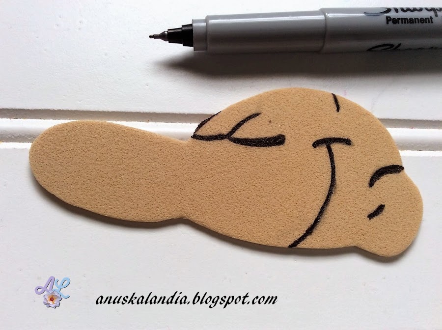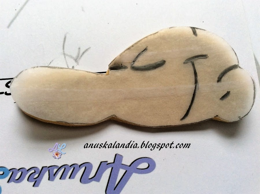 1.- Como siempre, marcamos el molde en la goma eva. Recortamos.