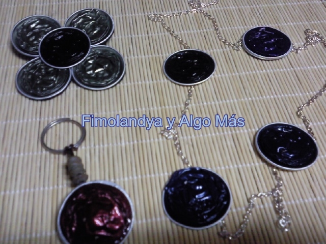 Un collar, un broche, un llavero y unos pendientes. Todo realizado con capsulas de Nespresso.