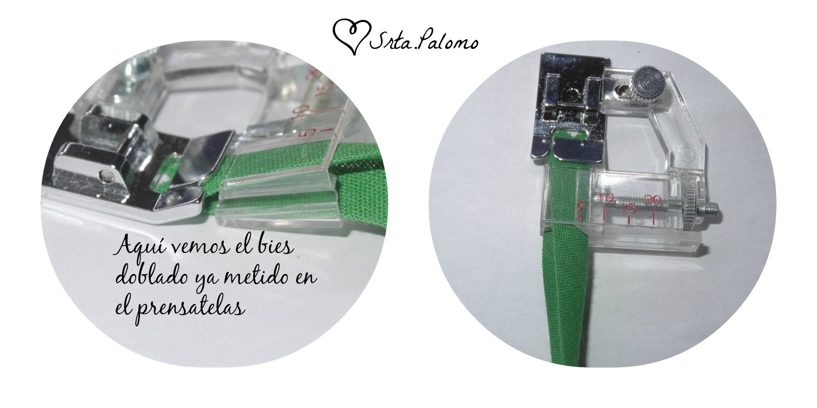 Tal y cómo comentamos os dejo un tutorial sobre éste cachibache y cómo se usa el prensatelas para colocar cinta bies.