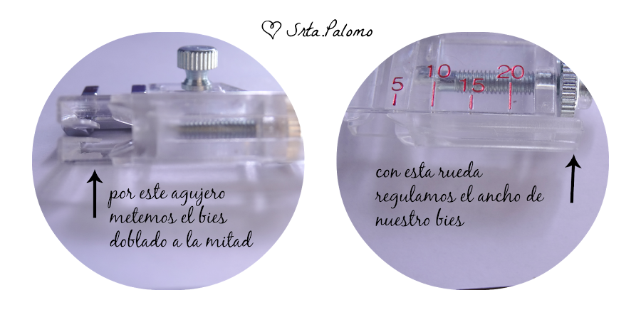 Tal y cómo comentamos os dejo un tutorial sobre éste cachibache y cómo se usa el prensatelas para colocar cinta bies.