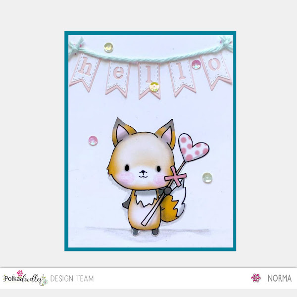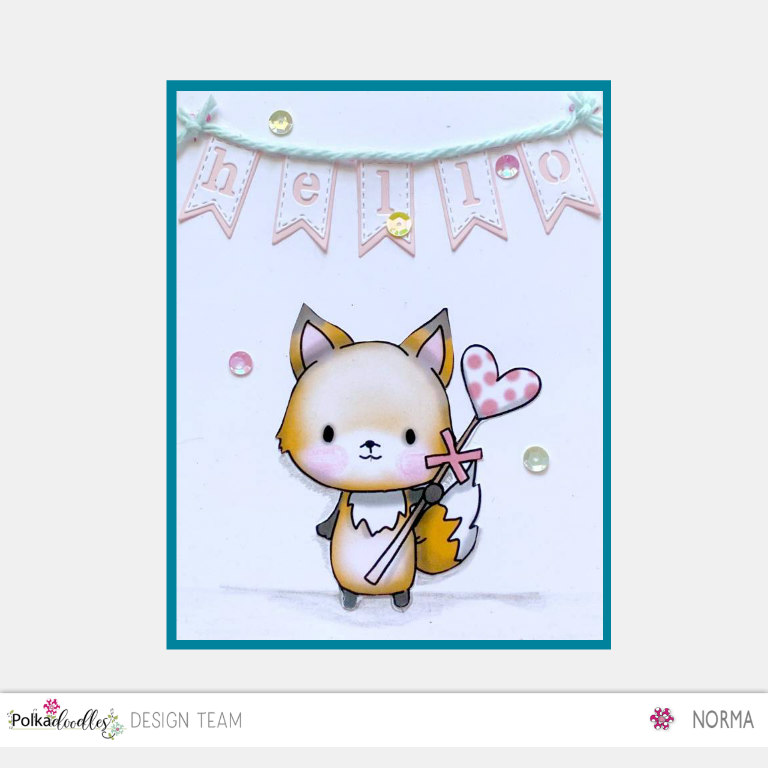 Para la tarjeta de esta semana, que como siempre es clean and simple, use el tierno sello digital llamado Foxy love & kisses