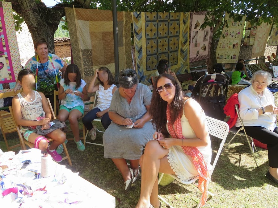 Durante el paseo aprovechamos a charlar con algunas de las personas que exponían y compartían sus maravillosas Almazuelas con todos nosotros. Cuál mi sorpresa cuando nos pusimos a hablar con una de ellas, porque me encantaban las colchas que había llevado, y resultó ser Belén de Belén Patchwork. Me hizo muchísima ilusión conocerla, es un encanto. Había llevado unas colchas preciosas. En las fotos no se terminan de apreciar pero son muy bonitas y tienen un detalle acolchado a mano impresionante.