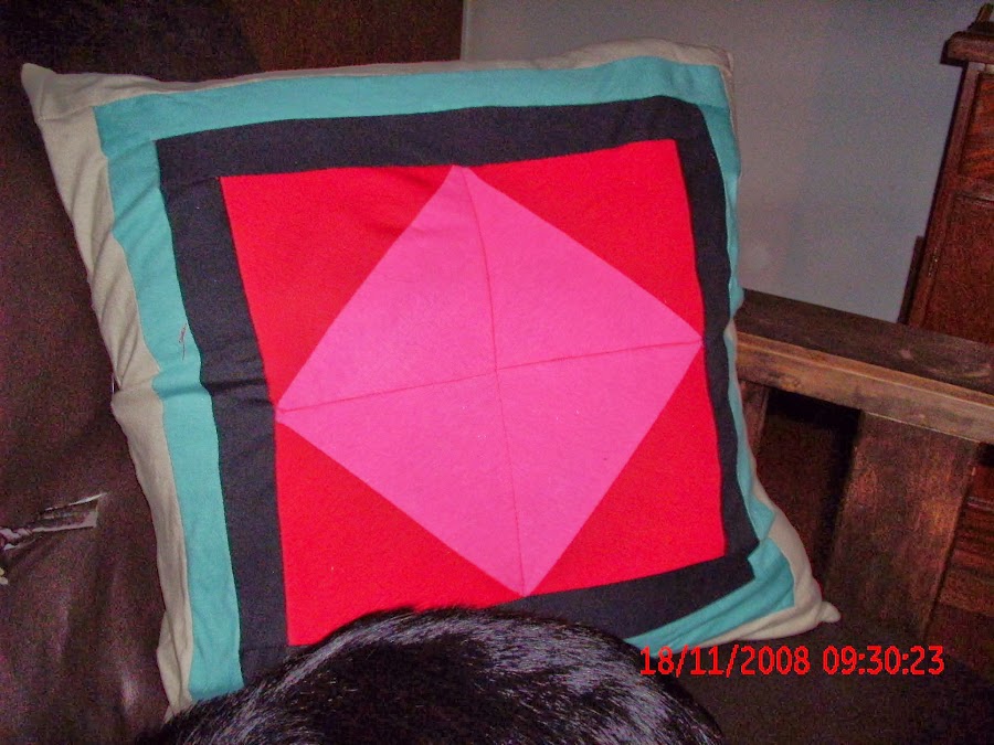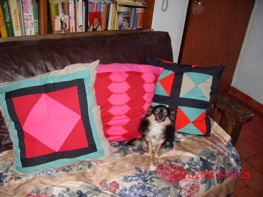 Estos almohadones los realice con telas recicladas, las telas las conseguí en el taller de mi sobrina,el rosa esta hecho con los recortes que quedan de hacer el cuello de las remeras, y el resto son retazos de distintas formas que fui adaptando para realizarlo en la técnica del patchwork, como siempre las fechas no corresponden al tiempo en que las tome, estas las realice en este año 2013, y mi mascota como siempre, cuando ve que tomo la cámara ya esta en pose para salir el, aprovecho para contarles que me lo regalo mi hijo en enero justo en reyes, es mi fiel compañero, es muy inteligente y cariñoso.