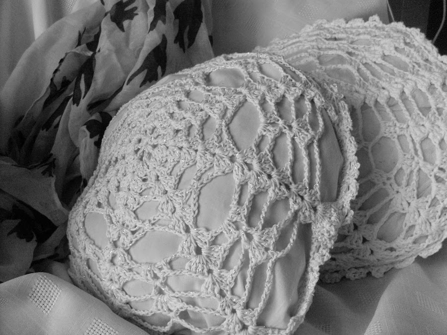tejidos en hilo blanco con una hebra de lurex e hilo blanco puro.