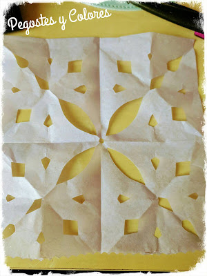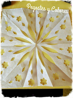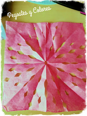 8.- Desdoblamos la servilleta y este es el resultado. Como ven se puede hacer todo lo que uno quiera dependiendo de los cortes que se hagan y si tienes troqueladoras de otras formas, divertirte perforando formas.