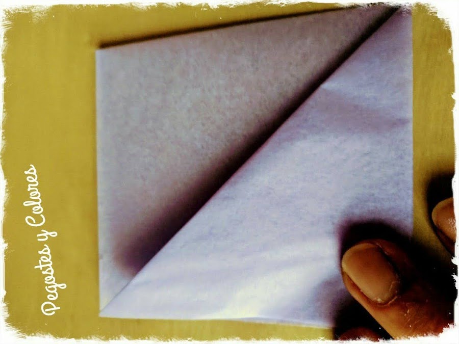 3.- Doblamos llevando la esquina inferior izquierda hacia arriba. marcamos bien la diagonal.
