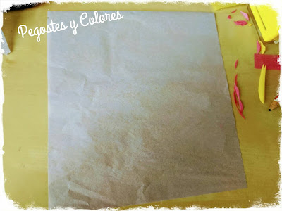 1.- Colocamos el papel de forma que la base sea de 17 cm y la altura de 18 cm. Esto es porque ese cm extra nos va a servir para pegar el papel en un cordel. Las medidas que quieran hacer estan bien siempre dejando un cm extra en la altura,