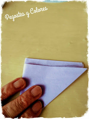 4.- Y volvemos a doblar llevando la esquina inferior derecha hacia arriba. Siempre vigilando que el cm extra quede arriba.
