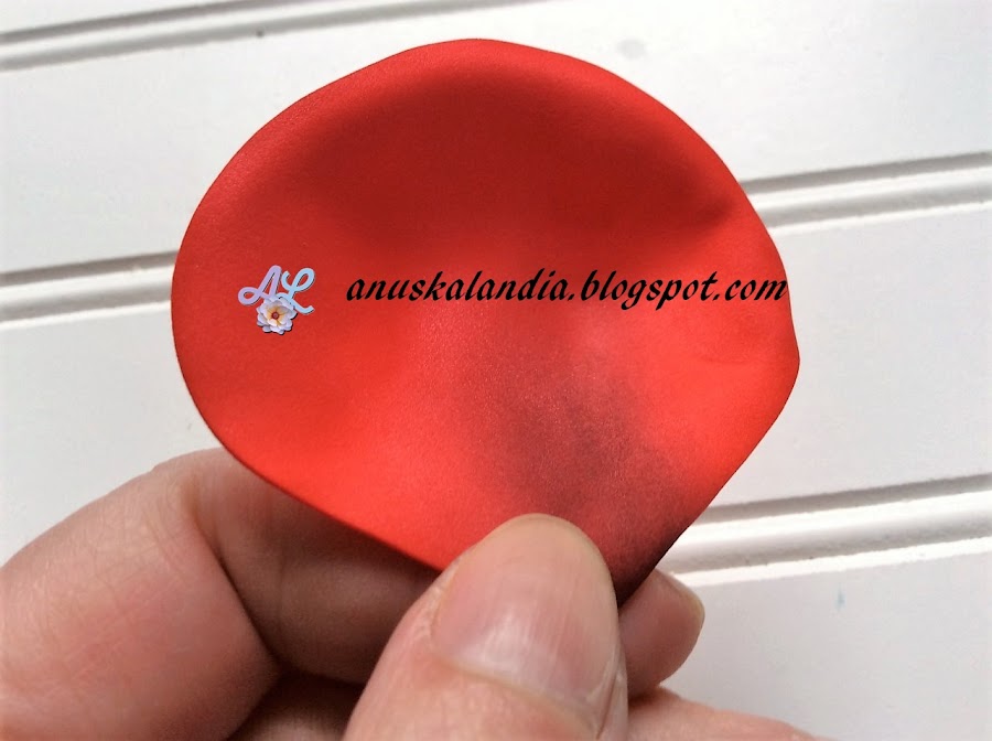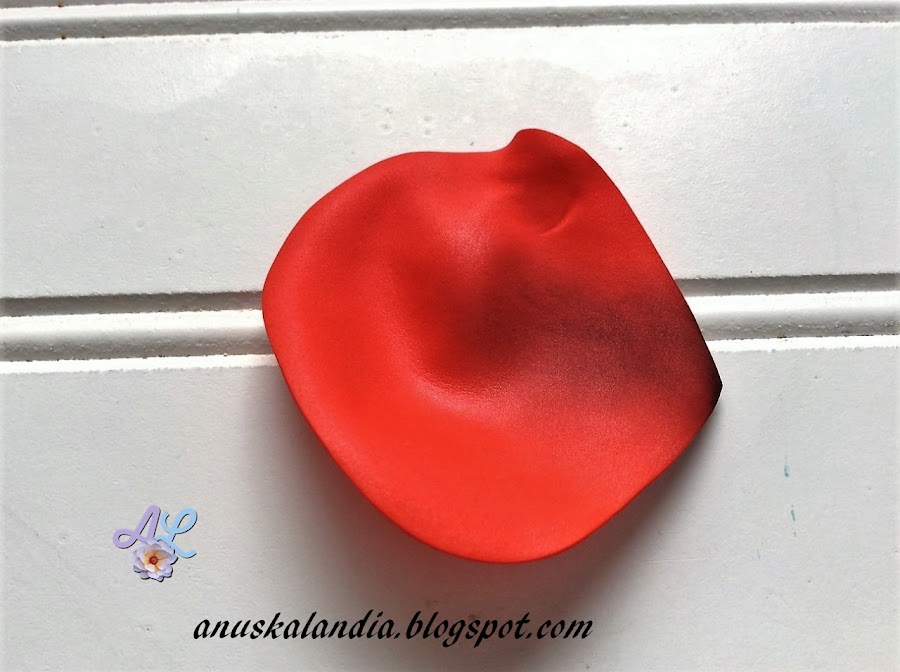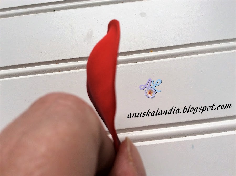 7.- Los bordes de las amapolas, tienen un aspecto dentado, para conseguir más o menos ese efecto, calentamos de a poco el pétalo y hacemos un movimiento de "romper papel" e iremos alternando este movimiento, hacia dentro y hacia fuera.