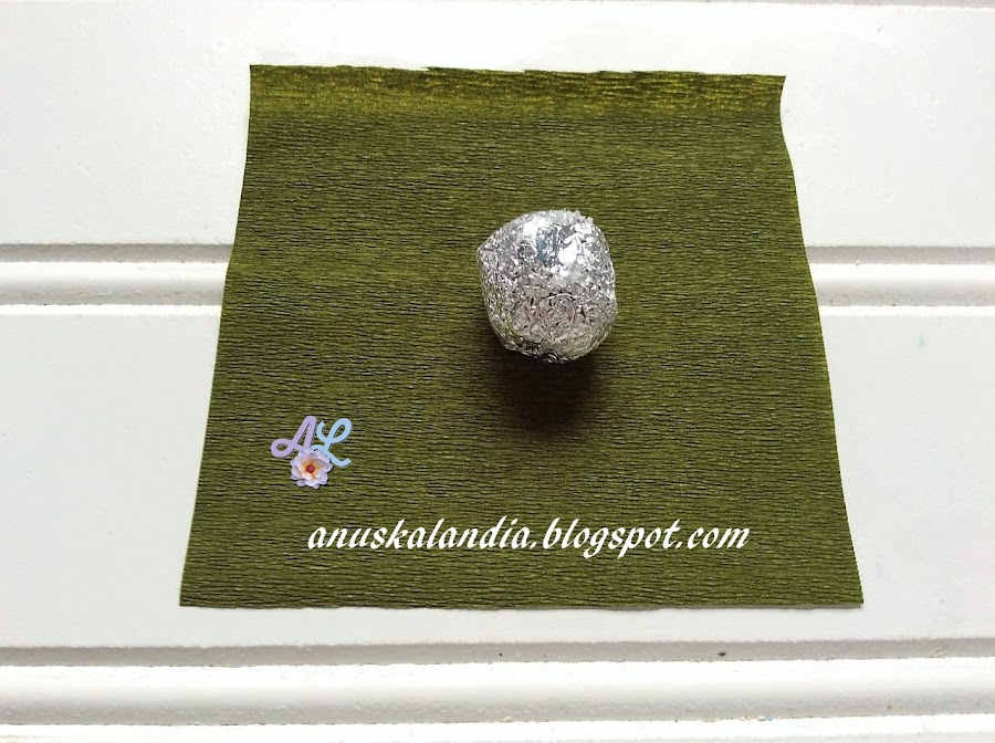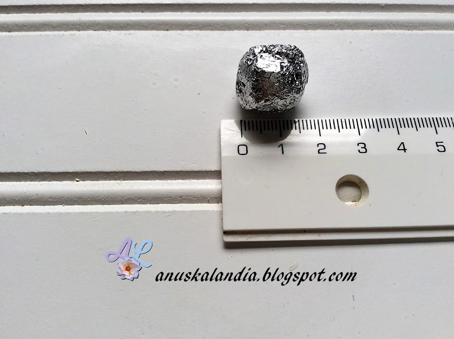 2.- Tomamos un trozo de papel aluminio, arrugamos y hacemos una bola de 1,5 cm. que será el centro de nuestra flor.