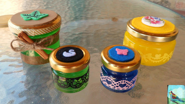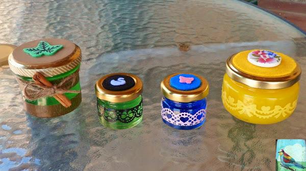 También de paso he reciclado algunos botes de cristal y por supuesto, lo mejor, ahora huele todo a pino... como iba diciendo, tenéis aquí el tutorial muy bien explicado por manualizando, así que yo sólo os voy a explicar como he decorado los botes.