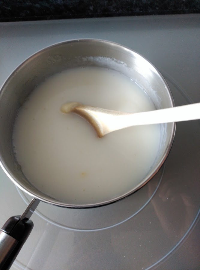 3. Remover hasta que la gelatina se disuelva completamente. Yo puse el cazo de nuevo al fuego pero muy bajito para conservar el calor.