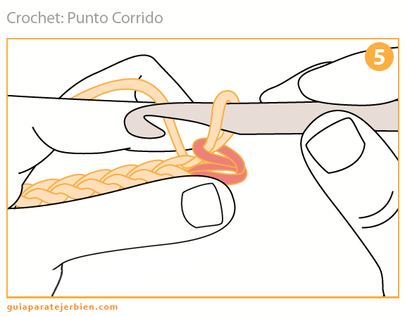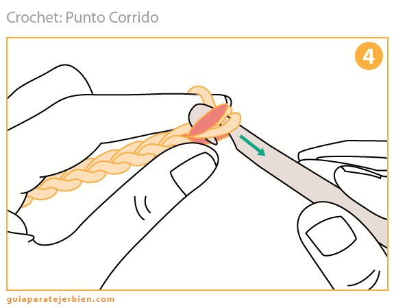 Se continúa con el punto cadena que sigue y se repiten los pasos 1 a 4 tantas veces como sea necesario.