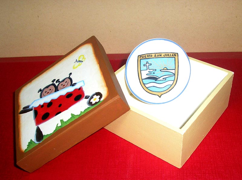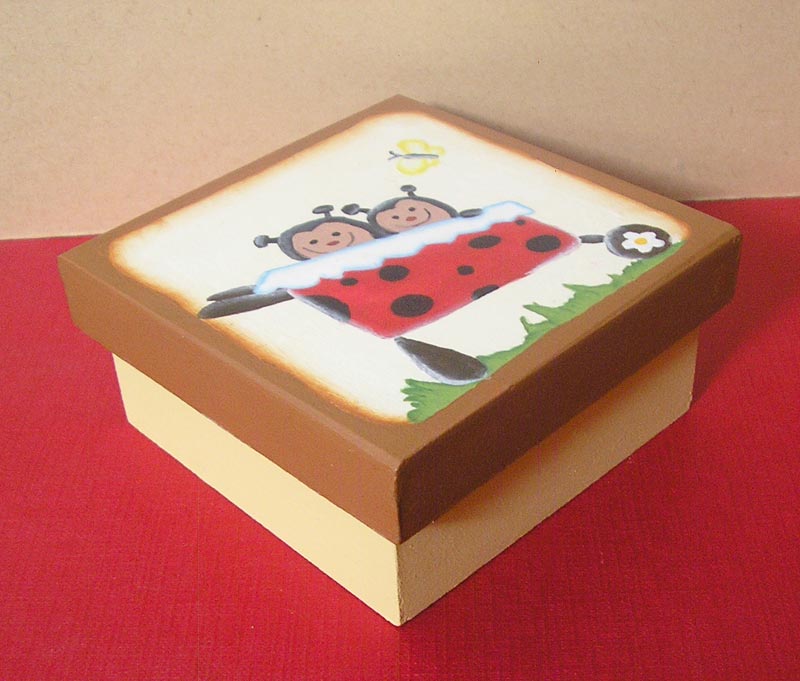 Y me ha mandado mi regalo de Navidad bien prontito .Me ha hecho esta preciosa caja que ella me ha pintado con unas preciosas mariquitas, allí en Argentina las llaman vaquitas de San Juan.