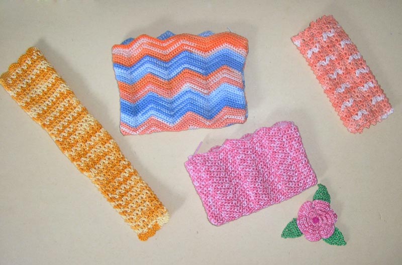 Curiosamente compartimos muchas cosas, por ejemplo a Rosi le encanta el ganchillo y utilizando de correo a Andrea las dos vamos viendo las cositas que hacemos lo último que me ha mandado son estas preciosidades. Son dos bolsitos, dos fundas, una para movil y otra para un abanico y un broche.