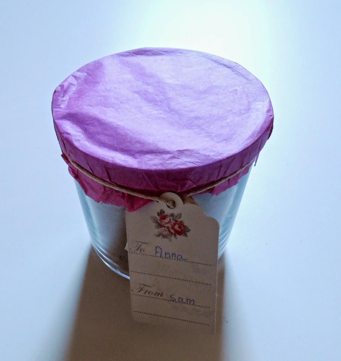Un tarro de cristal, con un preparado dentro, y con una hermosa etiqueta.