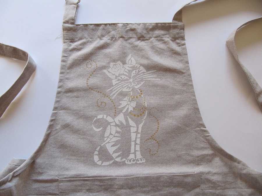 El delantal pinte con un stencil de una gatita toda presumida!, mi familia es muy gatuna!