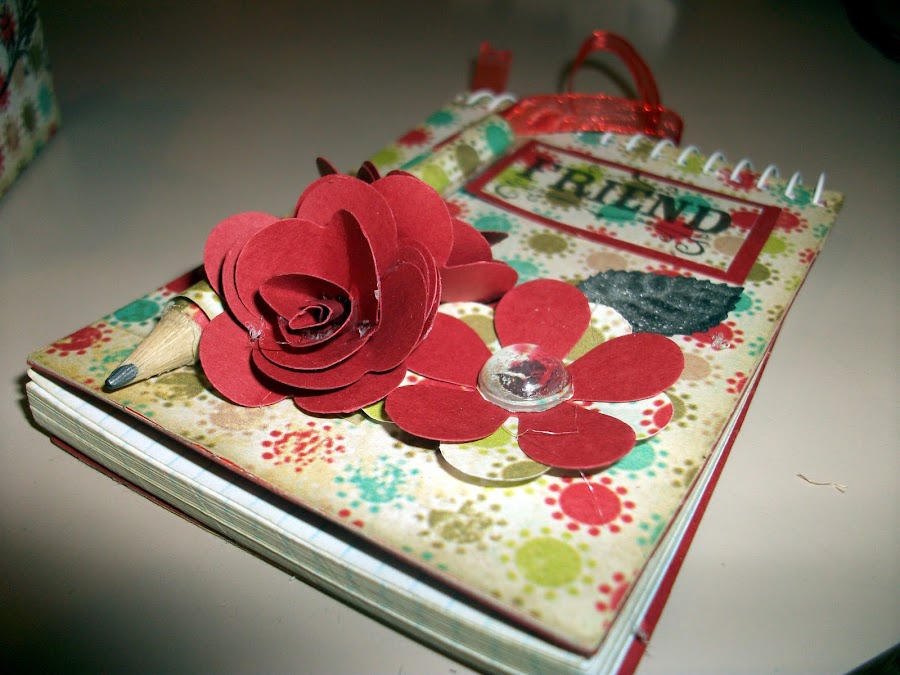 Elegí un papel del taco papeles deMy Minds Eyes "So Sophie" que me encanta,, y con el forre la cajita y la libreta, y un lápiz de ikea jajaja, con el papel que me sobro hice algunos troqueles y los metí en la cajita.