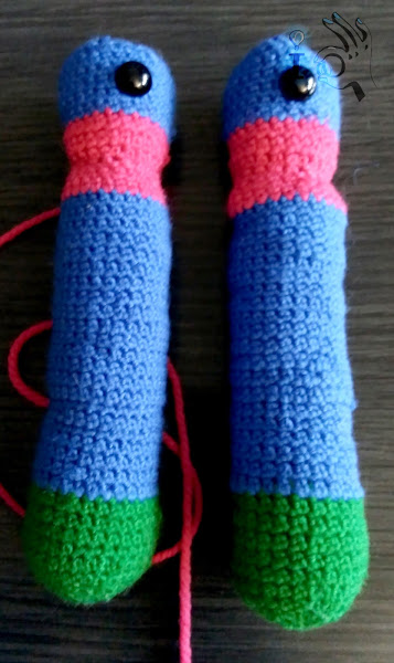Yo tejí otras cosas entre una de las cromátidas y otra y resulta que el punto me quedó mucho más apretado entre una y otra... pero bueno, una está con el DNA más condensado que la otra.. que le vamos a hacer, en la naturaleza también pasa... jajajajaja...
