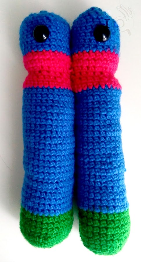 Se cierra el cromosoma. Se cosen las dos cromátidas por la parte roja con la hebra roja que se ha dejado por fuera. Y listo!!!