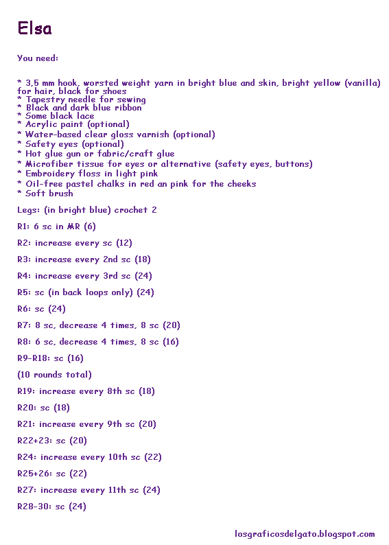 Bonito patrón para realizar en amigurumi a Elsa de Frozen...