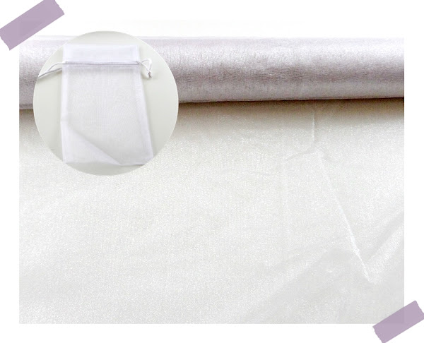 El material de las alas es éste de aquí abajo, y lo encontré en una tienda cerca de mi casa hace ya algún tiempo, Creo que también es el mismo o muy parecido al de estas bolsitas para meter regalitos.