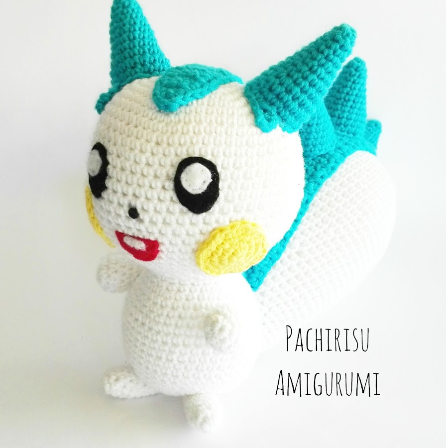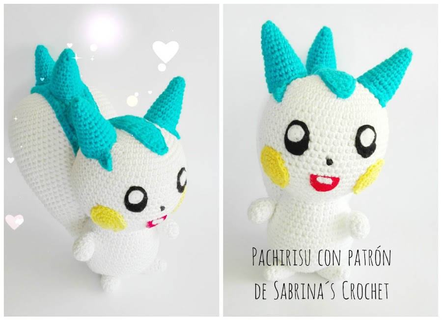 En ese momento acababa de hacer una Pokeball para mi ahijado Hugo y me encontraba haciendo a otro de los personajes que incluía en esta recopilación. Pues bien, hoy por fin te puedo enseñar el resultado de este personaje llamado Pachirisu. La verdad es que una vez terminado es uno de los amigurumis más bonitos y estoy súper contenta del resultado!!