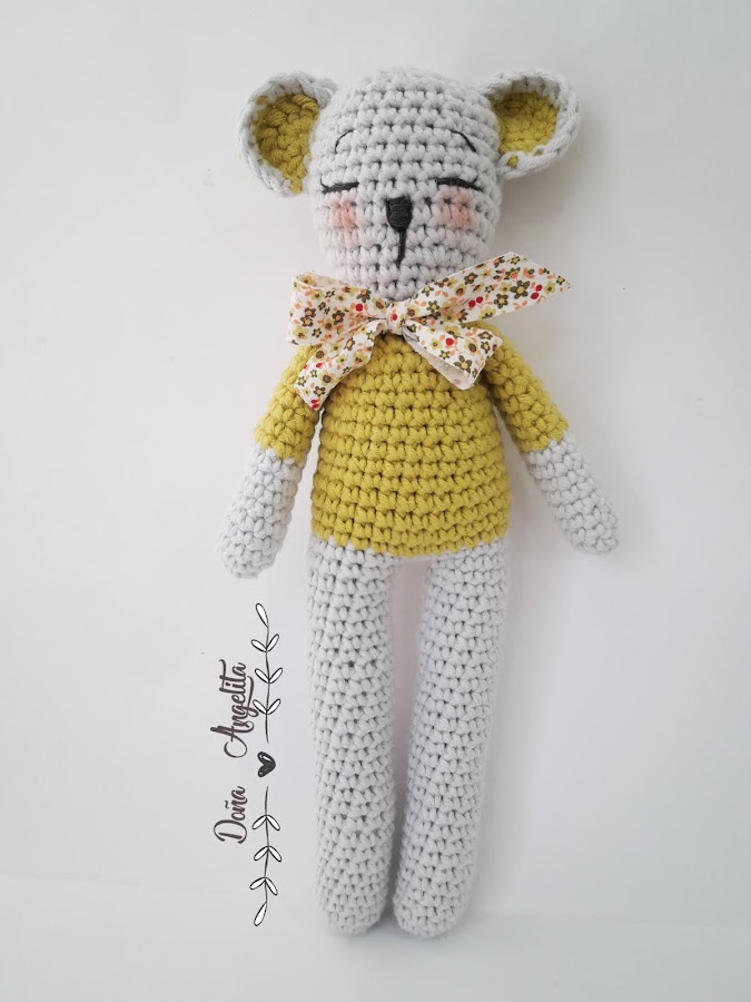 No se sabe si es oso, ratón, gato, lo cierto es que es super mimosón con estos colores y su superlazo. Fuí anotando todas las puntadas porque en este mundo nunca se sabe si vas a repetirlo algún día... y por supuesto que repetiré en otros colores.