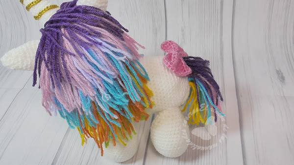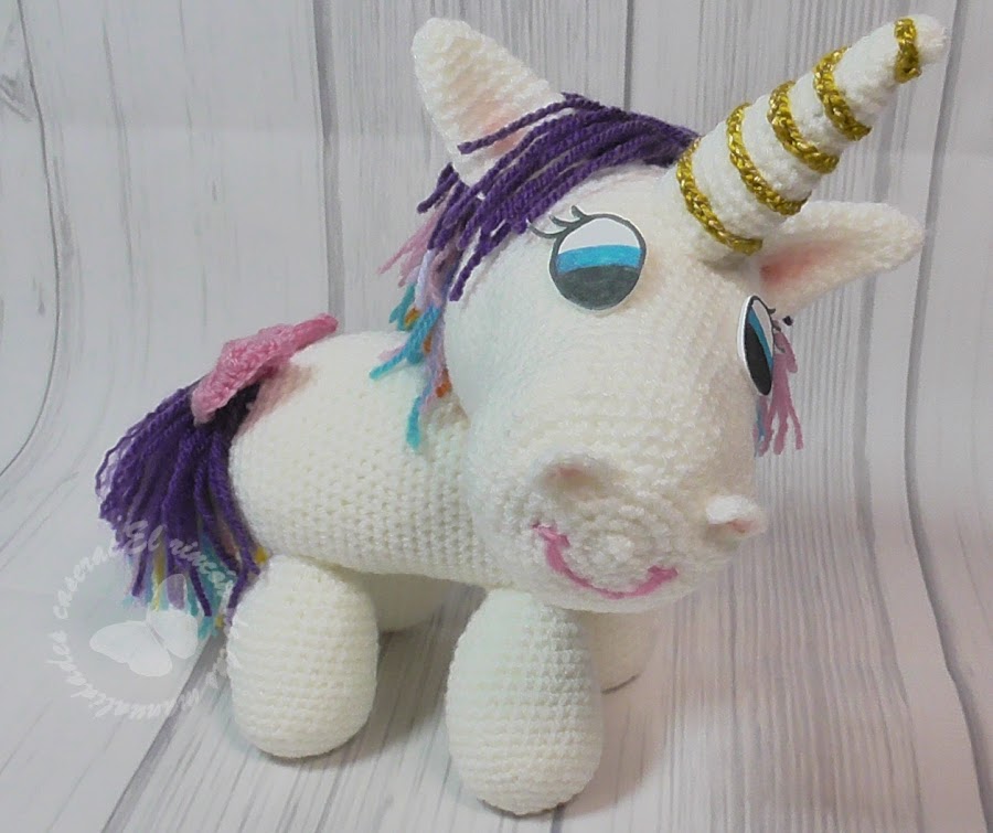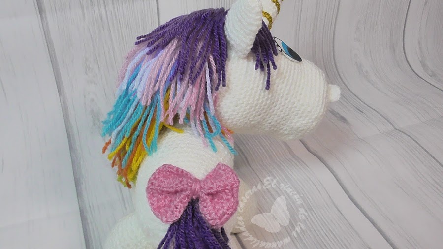 Aquí os dejo el tutorial que yo he seguido para hacer este unicornio. Es del canal Amigurumis Patrigurumis. El primer vídeo te ayudará a tejerlo y el segundo a coserlo y hacerle la melena.